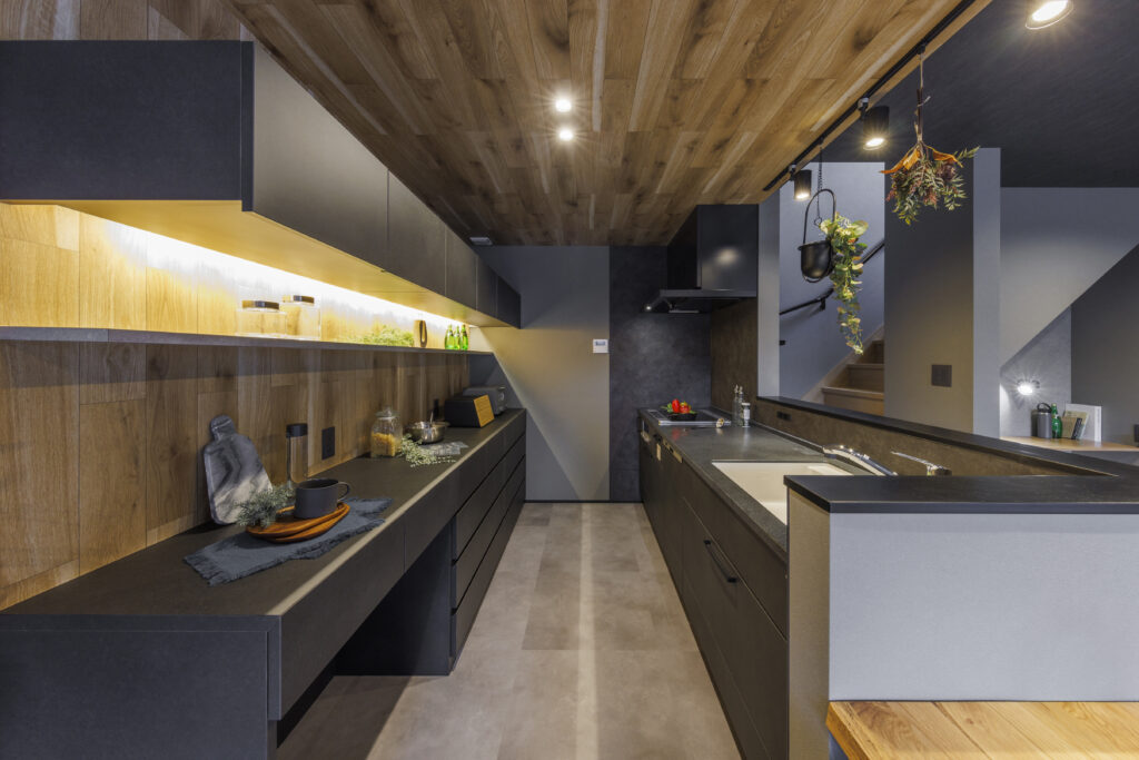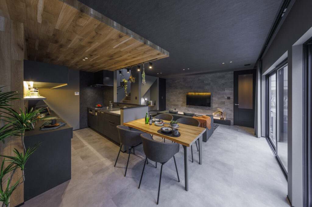家族が過ごす空間が、よりくつろげる空間へとするためグレーを取り入れた空間づくりを意識しています。 色の明暗が分かれる為、カッコよさを際立たせてくれます。 オシャレな空間で、家族がくつろげる生活を送ることが出来ます。